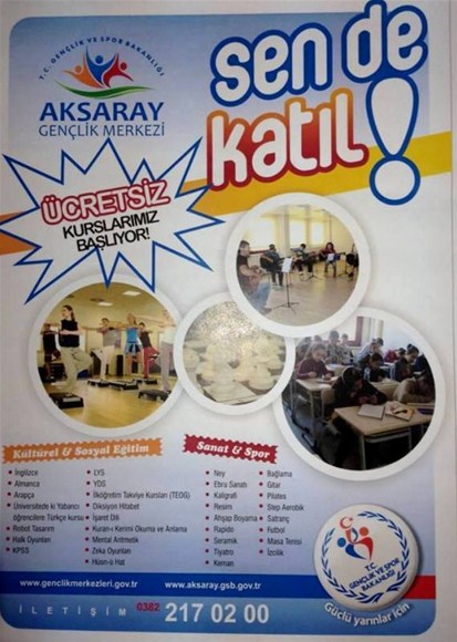 Aksaray Gençlik Merkezi tarafından “Sende Katıl”” sloganı ile başlatılan eğitim projesi, ilköğretim takviye kursları, İngilizce, resim, enstrüman ve tiyatro gibi 30 farklı branşta gençlere eğitim fırsatı sunuyor.